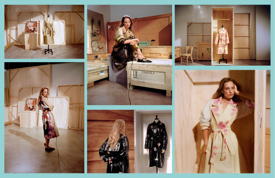 The campaign was shot by photographer and director Petra Collins, whose visual language has had a strong influence on contemporary photography. For this project, she made an unusual choice and appears in the images herself, embodying the artist. Collins wears all five trench coats, which are also photographed separately in still-life compositions. Set in an art-filled space, the campaign underlines the idea that this collection is a true treasure – and that each trench is a wearable work of art.