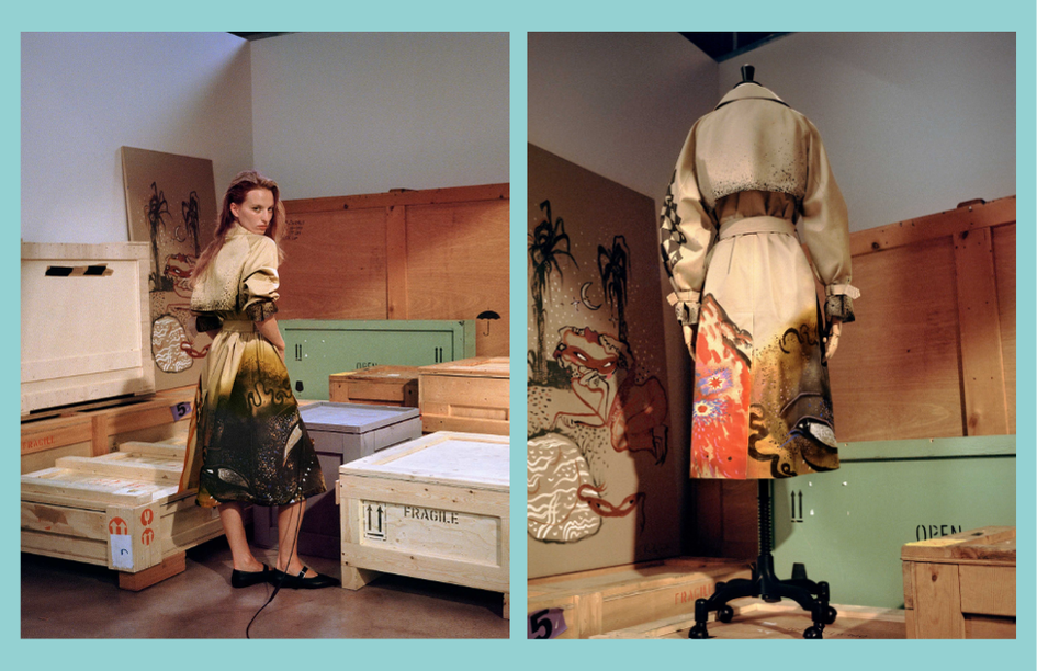 Within the project, signature Weekend Max Mara pieces turn into white canvases for Victoria Kosheleva, Paola Pivi, Tschabalala Self, Tai Shani and Shafei Xia. Each of them created an “artist’s trench” – a garment that fully reflects the artist’s vision, technique and creative identity.