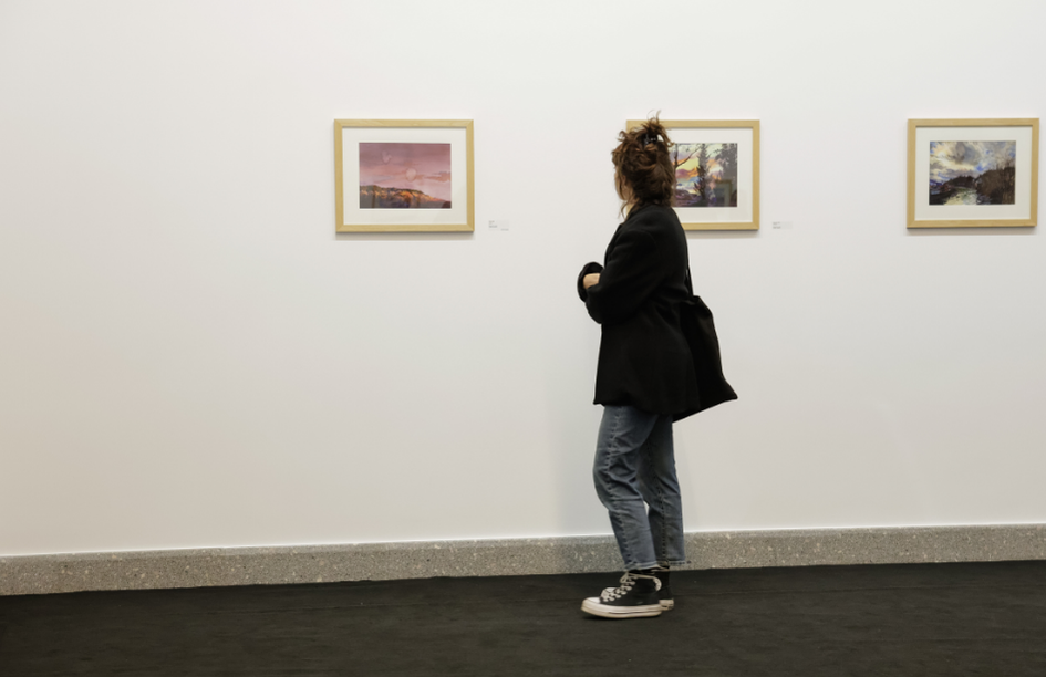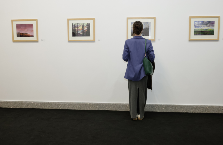 The title “Between Land and Eye” clearly reflects Rekhviashvili’s artistic vision. In his works, tones of swamp green, soft violet, and muted earth shades do more than describe nature – they build a space where colour seems to breathe. There is no strict border between land and vision. Instead, there is a shared zone where matter, perception, imagination, and memory exist together. Watercolour makes this process visible and light.